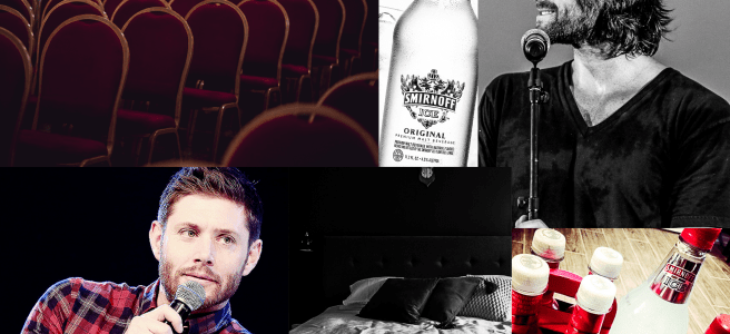 “Ugh I hate these things,” Jensen complained, but he sank to one knee to raucous applause and tipped the Smirnoff Ice back, downing it in an impressively short time. Rob and Rich grinned at each other and shared a surreptitious low-five behind Rob’s back. You were right next to their side of the stage now and they heard you laugh at them. Turning they gave you a thumbs up and Rich looked around, leaned in to whisper something to Rob, then pulled back with a pretty evil smile.