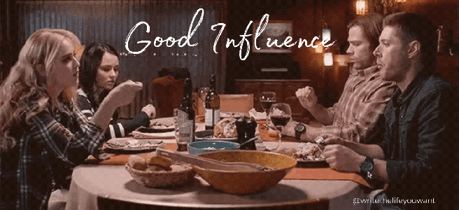 “If Cas pulls out the father act Claire’ll have his balls before he gets to mine.” Sam pulls a face that Dean understands to mean ‘good point’, and Dean slaps his little brother on the back supportively. “C’mon, Claire sure as hell ain’t gonna tell her, and I severely doubt Alex will,” Sam nods in agreement. “So, she’s not gonna find out. Now, why don’t we go back inside and show those girls just how good an influence we can be for them, huh?”